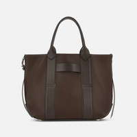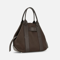 - Women's shopping bag - Item crafted in hammered leather - Smooth leather inserts - Front handle with stamped Hogan logo - Dimensions: 15.7 x 12.6 x 6.3 ins - Fixed handles - Adjustable compartment with strap and branded buckle - Via Monte Napoleone address logo stamped on the left strap - Hogan logo stamped on the left strap - Removable zipped pouch - Metal feet - Maintenance and care cards included - Fabric dustbag included Upgraded, lighter version of the iconic Shopping Script. With an unlined construction, it is crafted in soft exposed-grain leather, with two handles and the distinctive bands in smooth leather forming a maxi H. The front handle, with stamped Hogan logo, is designed to fit your hand through, providing an additional way to wear it. Sophisticated and functional, the bag features a removable internal pouch.