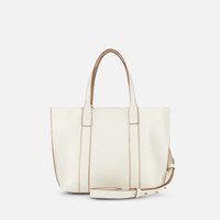 - Women's shopping bag - Item crafted in leather - Stamped Hogan logo - Dimensions: 13.8 x 9.1 x 4.3 ins - Fixed handles - Adjustable and removable shoulder strap - Magnetic button closure - Removable zipped pouch - Maintenance and care cards included - Fabric dustbag included The Script shopping bag in a small size, with bands on the front to form a maxi H. Featuring two fixed handles and an adjustable, removable shoulder strap, this bag in hammered leather comes with a metal H-Fob charm and key holder pendant. The internal compartment, closed with magnetic button, features a wide central removable zipped pouch.