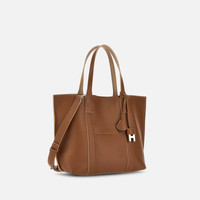 - Women's shopping bag - Item crafted in leather - Stamped Hogan logo - Dimensions: 13.8 x 9.1 x 4.3 ins - Fixed handles - Adjustable and removable shoulder strap - Magnetic button closure - Removable zipped pouch - Maintenance and care cards included - Fabric dustbag included The Script shopping bag in a small size, with bands on the front to form a maxi H. Featuring two fixed handles and an adjustable, removable shoulder strap, this bag in hammered leather comes with a metal H-Fob charm and key holder pendant. The internal compartment, closed with magnetic button, features a wide central removable zipped pouch.