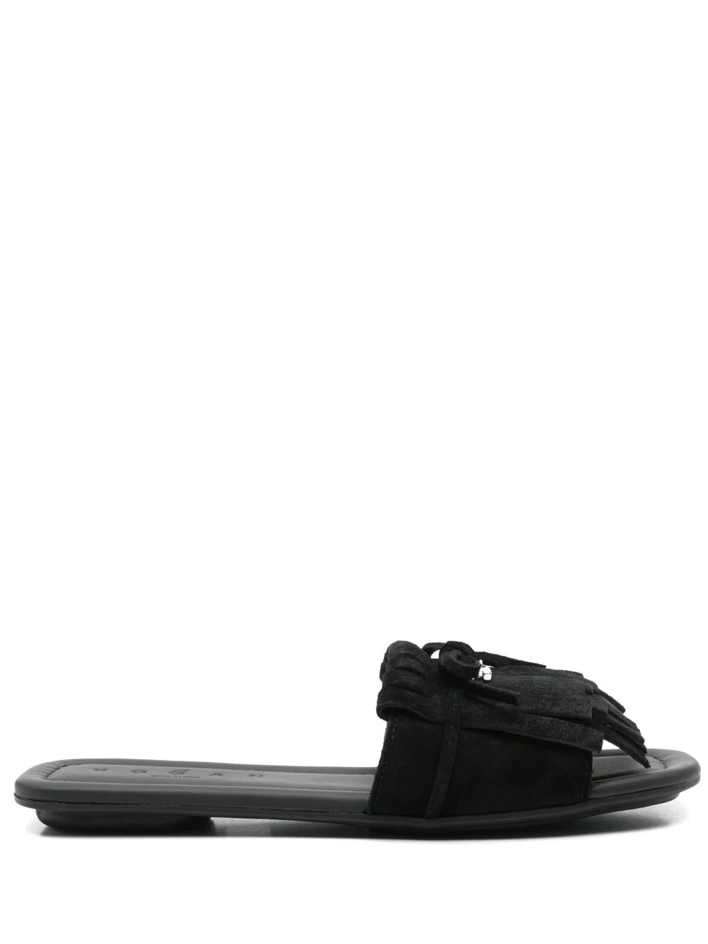H685 sandals Highlights - Black - Square open toe - Rubber sole - Fringe detailing - Bow detailing Made in Italy Composition Outer: Calf Suede 100% Lining: Calf Leather 100% Sole: Rubber 100%