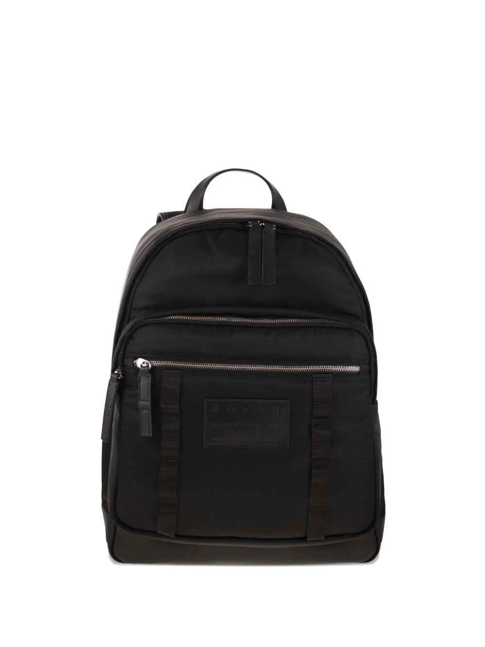 logo-patch backpack Highlights - Black - Leather details - Front zip compartment - Top handle - Adjustable shoulder straps - Zip closure Made in Italy Composition Outer: Fabric 100%, Calf Leather 100% Lining: Cotton 100% SIZE & FIT Measurement WIDTH 12.59 in(32 cm) HEIGHT 15.74 in(40 cm) DEPTH 4.33 in(11 cm)