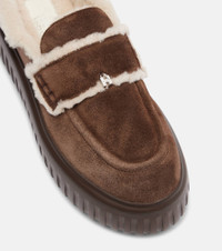 Step into the world of Hogan, the Italian brand that blurs the boundaries between formal and informal footwear. The HStripes platform loafers are crafted from supple suede and feature shearling trims. Product Details - Upper: leather (suede) - Lining: shearling - Sole: shearling insole, rubber sole - Toe shape: round toe - Made in Italy - Includes: dust bag, shoe box - Designer color name: Coconut - Item color: brown - Trim: shearling - Hardware color: silver - Item number: P01118536 Size & Fit - True to size - European sizes - 6cm-2.5" platform (size EU 38)