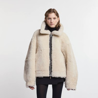 - Made in Italy - Jacket in shearling - Fitting: over - Item composition: 100% sheepskin, bovine leather detailing - Maintenance and care cards included Reversible jacket in shearling, with one side in nappa leather and the other in soft fur. Featuring an oversized collar, it comes with two welt pockets on both sides. A versatile urban garment with a double mood: bold yet cozy.
