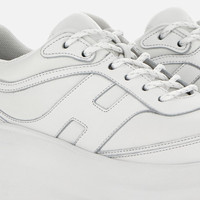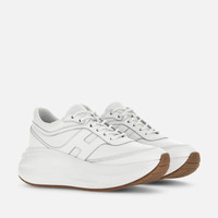 - Women's Hogan H696 Sneakers - Made in Italy - Nappa leather upper - Leather side H and inserts - Hogan logo stamped on the tongue - Memory foam insole 0.2 ins - Extralight rubber outsole - Total height 2.6 ins - Maintenance and care cards included - Fabric dustbag included - Additional laces included A new sculptural construction and a voluptuous chunky sole that provides comfortable elevation. The Hogan H696 sneaker features a dynamic and sophisticated design. Crafted in nappa leather with luxury manufacturing, it comes with a softly rounded upper, maxi H on the side and a memory foam insole.