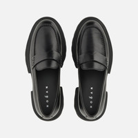 - Women's Hogan 10-Storey Loafers - Smooth leather upper - Soft insole 0.2 ins - EVA outsole - Total height 2.2 ins - Maintenance and care cards included - Fabric dustbag included Epitomizing modern urban aesthetics and attitudes, these saddle loafers come with a workwear-inspired, and a new extralight signature split-sole. Crafted in smooth leather, they feature an upper with essential line, and penny bar on the front. Complemented by a soft insole, they are a versatile model for your everyday look.