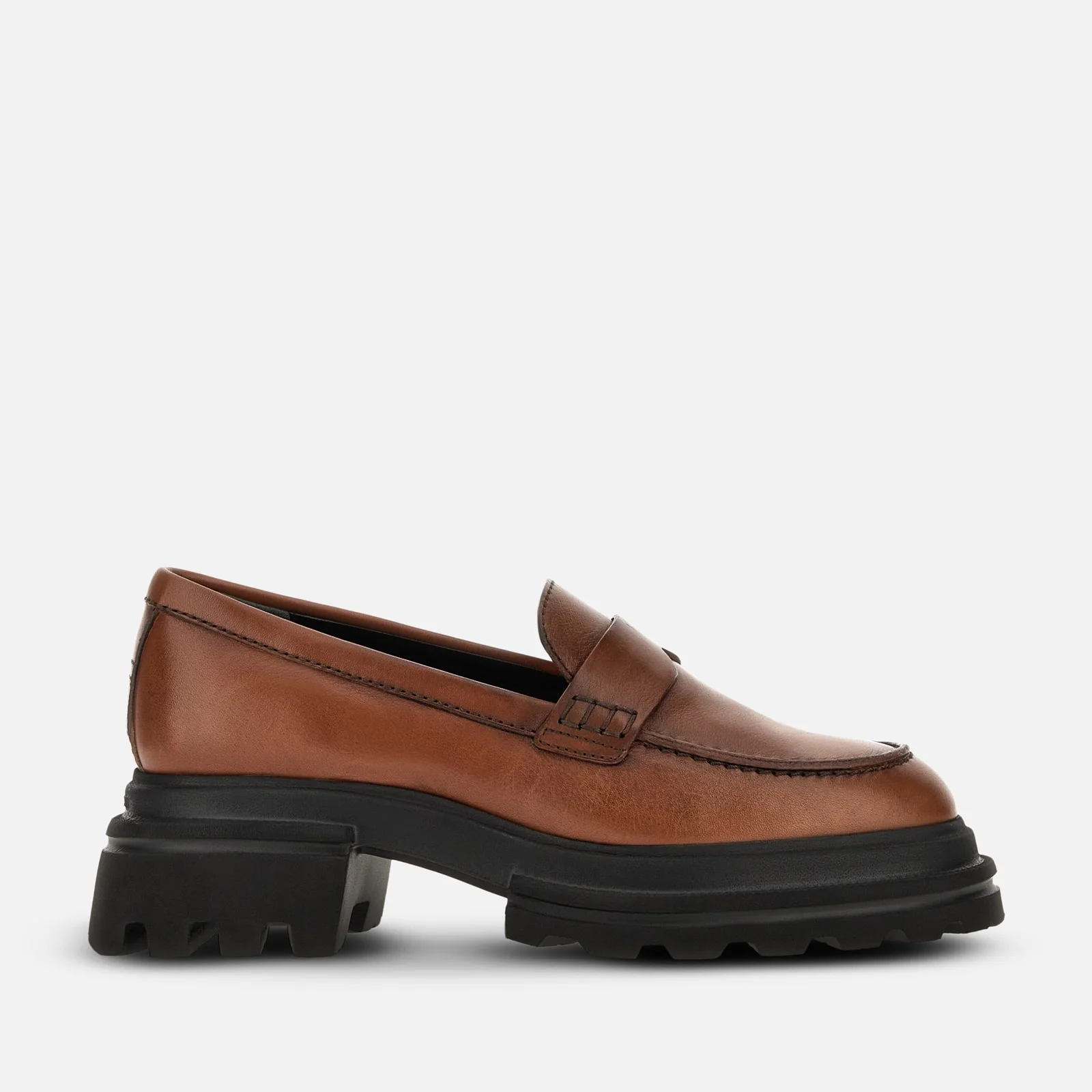 - Women's Hogan 10-Storey Loafers - Smooth leather upper - Soft insole 0.2 ins - EVA outsole - Total height 2.2 ins - Maintenance and care cards included - Fabric dustbag included Epitomizing modern urban aesthetics and attitudes, these saddle loafers come with a workwear-inspired, and a new extralight signature split-sole. Crafted in smooth leather, they feature an upper with essential line, and penny bar on the front. Complemented by a soft insole, they are a versatile model for your everyday look.