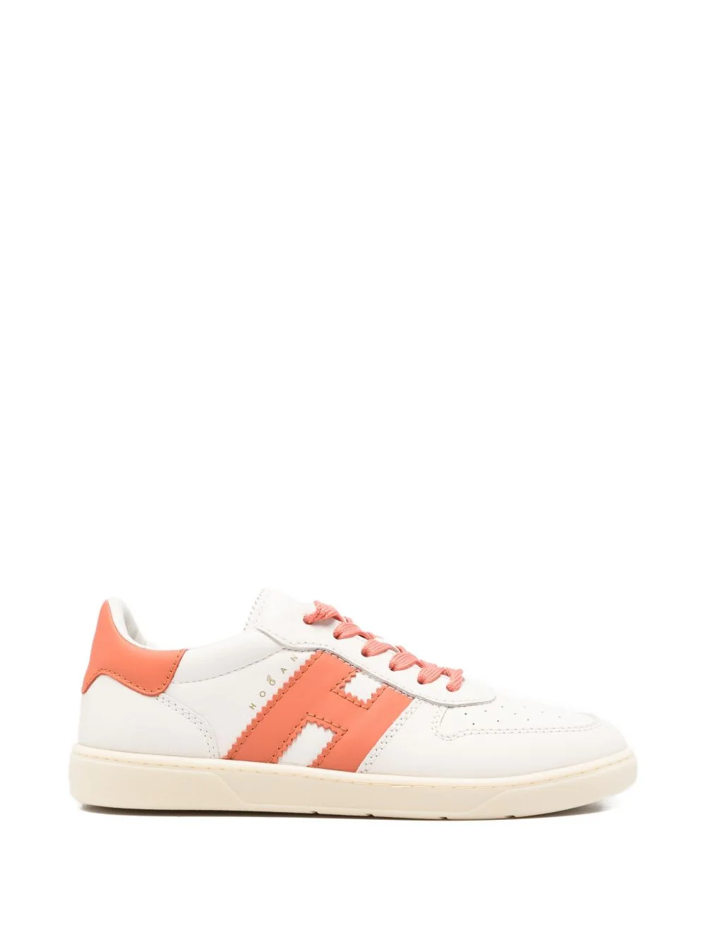 logo sneakers Highlights - Beige - Logo detail - Lace-up fastening - Round toe - Flat rubber sole - Perforated detailing Made in Italy Composition Outer: Calf Leather 100% Lining: Calf Leather 100%, Fabric 100% Sole: Rubber 100%