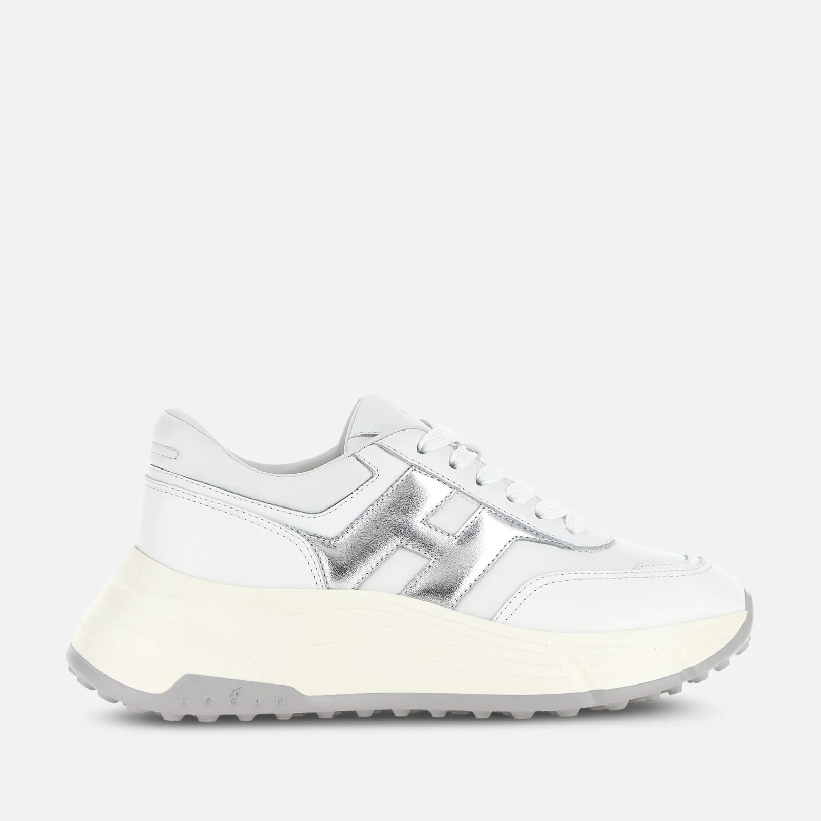 - Women's Hogan Hi-Fi Sneakers - Made in Italy - Smooth leather upper - Nappa leather inserts - Metallic leather side H - Memory foam insole 0.3 ins - Rubber outsole - Total height 2.6 ins - Maintenance and care cards included - Fabric dustbag included - Additional laces included The Hogan Hi-Fi sneakers take a feminine twist on the studded Hyperlight outsole, with a raised platform for height and elegance. Recalling the 80s sporting iconography with their technical finishing and urban vocation, they feature a combination of soft and snappy lines. The upper comes here crafted in smooth and nappa leather, with a maxi metallic side H. An energetic athleisure style, with a memory foam insole to guarantee extra comfort and a cushioned fit.