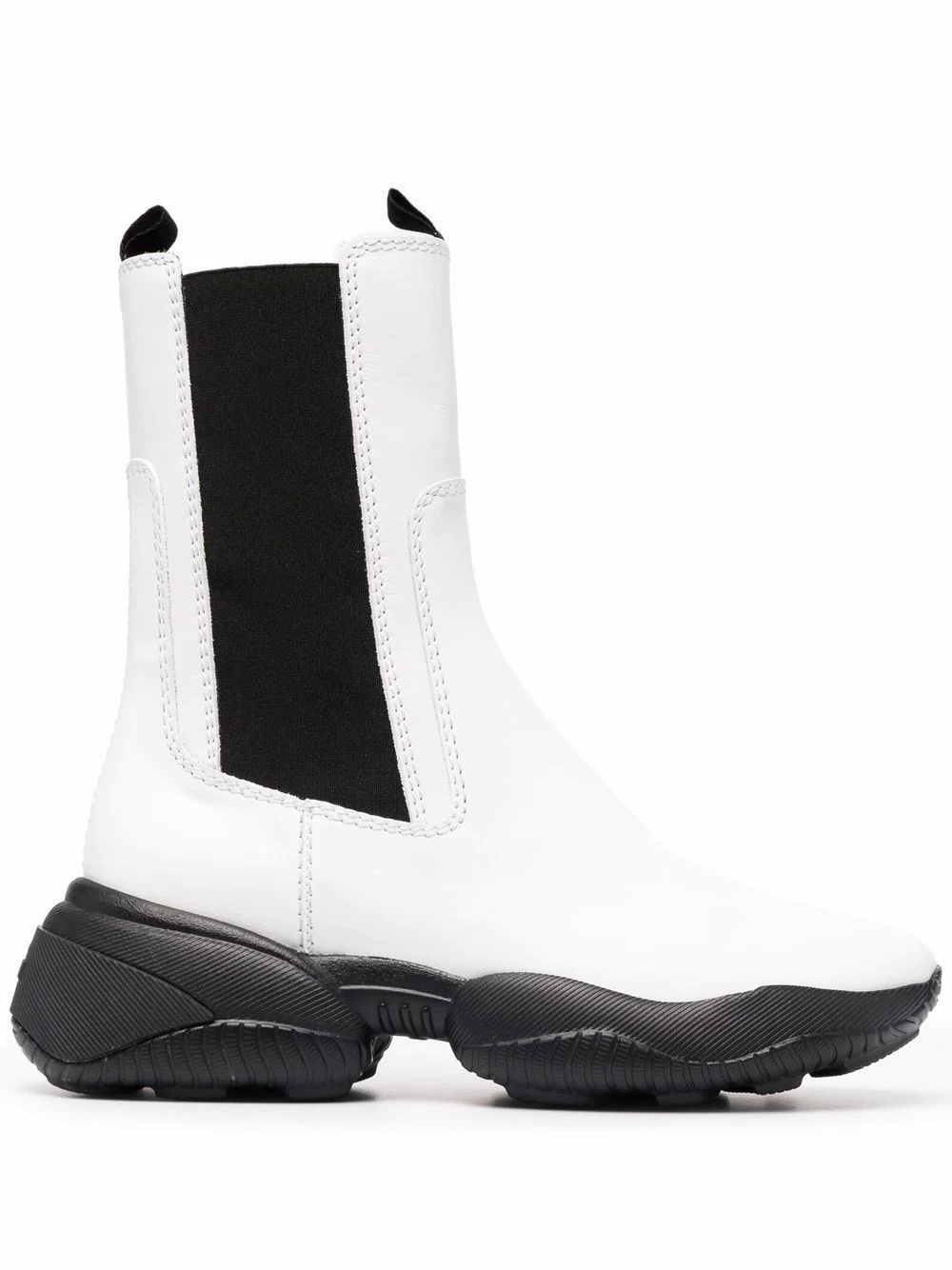 mid-calf leather boots white/black leather two-tone design round toe elasticated side panels double pull-tab at the opening chunky rubber sole Made in Italy Composition Leather 100% SIZE & FIT Measurement CIRCUMFERENCE 9.44 in(24 cm) HEEL 2.16 in(5.5 cm) HEIGHT 7.48 in(19 cm) Sole height 0.98 in(2.5 cm)