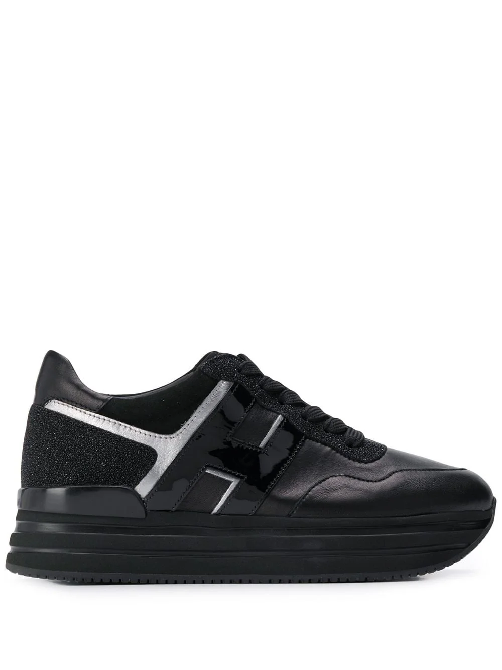 - Women's Hogan Midi Platform sneakers - Made in Italy - Leather upper - Glitter inserts - Metallic leather detailing - Side H in patent leather - Removable insole 0.3 ins - Ultralight EVA outsole - Total height 2.2 ins - Maintenance and care cards included - Branded dustbag included The new Midi Platform sneakers in leather with glitter inserts are characterized by the patent leather H on the side emphasized by a metallic under-edge. With a casual glam spirit, they feature an iconic outsole that makes them perfect for enhancing even the simplest of everyday outfits. MOD. HXW4830CB80LVK019U