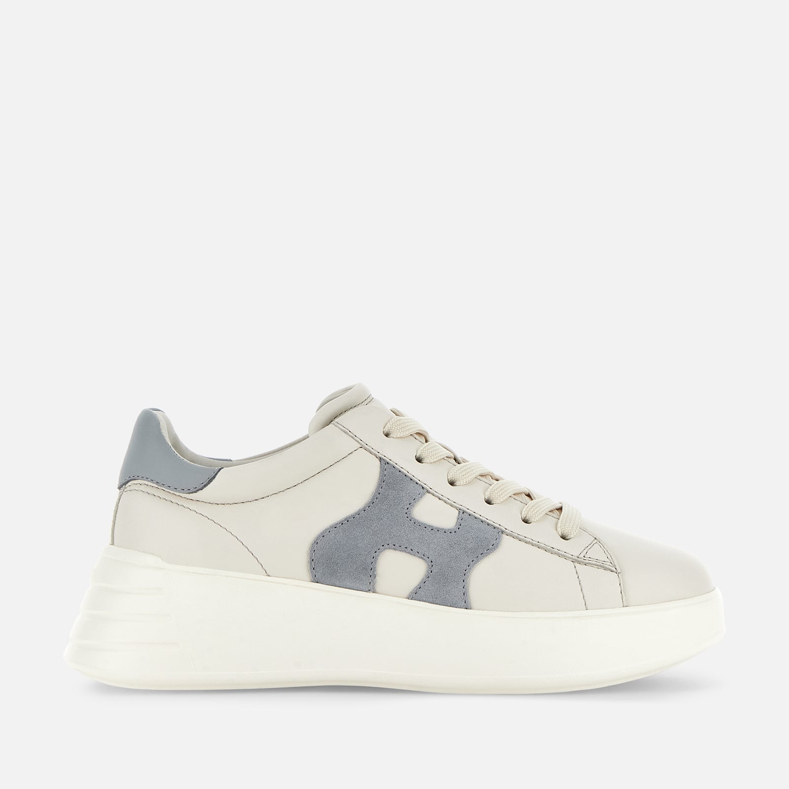 - Women's Hogan Rebel Sneakers - Made in Italy - Nappa leather upper - Suede side H - Memory foam insole 0.2 ins - Rubber outsole - Total height 2 ins - Maintenance and care cards included - Fabric dustbag included - Additional laces included Reinterpreted in design and volumes, the iconic Hogan Rebel project features an extralight outsole with grooves on the back. With soft and refined lines, these sneakers are crafted in soft nappa leather, with wavy side H in suede. The memory foam insole guarantees a cushioned fit to this cool and versatile style.