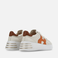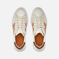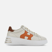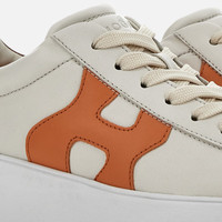 - Women's Hogan Rebel Sneakers - Made in Italy - Smooth leather upper - Side H - Memory foam insole 0.2 ins - Hand-painted rubber outsole - Perceived height 2 ins - Maintenance and care cards included - Fabric dustbag included Reinterpreted in design and volumes, the iconic Hogan Rebel project features an extra-light outsole with hand-painted grooves on the back. With soft and refined lines, these women's sneakers are crafted in smooth leather, with wavy side H. The memory foam insole guarantees a cushioned fit to this cool and versatile style. MOD. HXW5640DN61QZB0SRV