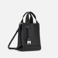 - Women's Hogan Shopping Bag Mini - Item crafted in hammered leather - Embossed Hogan logo - Coated metal H-Fob charm - Central pocket with cardslots - Dimensions: 6.3 x 7.1 x 3.5 ins - Double handles - Adjustable and removable shoulder strap - Maintenance and care cards included - Fabric dustbag included Crafted in hammered leather, this unlined mini bag features two portable handles and a removable shoulder strap. The interior is divided into two compartments, separated by a flat zipped pocket. A chic and functional statement, it's completed with a Hogan logo in relief and the metal H-Fob pendant.