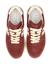 side-stripe lace-up sneakers Highlights - Red - Suede - Side stripe - Lace-up fastening - Round toe - Flat sole - Topstitching Imported Composition Outer: Suede 100% Lining: Fabric 100% Sole: Rubber 100%