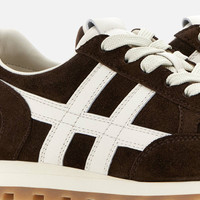 - Women's Hogan 86er Sneakers - Suede upper - Smooth leather H applied on the side - Nappa leather detailing - Soft insole covered in leather 0.2 ins - EVA outsole - Total height 1.6 ins - Maintenance and care cards included - Fabric dustbag included - Additional laces included A nod to the popular sneakers that helped define the year of the brand’s birth, the Hogan 86er come here with the iconic H applique detailing. The extralight outsole features a cleated tread that also designs the heel reinforcement. Complemented by a soft insole, these sneakers in suede are perfect for an easy-going and relaxed outfit.