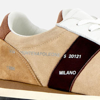 - Women's Hogan 86er Sneakers - Suede upper - Smooth leather inserts - Lettering stamped on the side - Soft leather covered insole 0.2 ins - EVA outsole - Total height 1.6 ins - Maintenance and care cards included - Fabric dustbag included - Additional laces included A handcrafted appeal defines the Hogan 86er, here in a combination of antiqued suede and smooth leather, for a vintage look. Inspired by 80s track & field iconography, it features the iconic Via Monte Napoleone address logo on the side. The extralight outsole comes with a cleated tread that also designs the heel reinforcement. Complemented by a soft insole, these are the perfect sneakers for an easy-going and relaxed outfit.