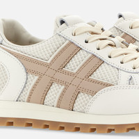 - Women's Hogan 86er Sneakers - Made in Italy - Smooth leather upper - Technical fabric inserts - Smooth leather H applied on the side - Nappa leather detailing - Soft insole covered in leather 0.2 ins - EVA outsole - Total height 1.6 ins - Maintenance and care cards included - Fabric dustbag included - Additional laces included A nod to the popular sneakers that helped define the year of the brand’s birth, the Hogan 86er come here with the iconic H applique detailing. The extralight outsole features a cleated tread that also designs the heel reinforcement. Complemented by a soft insole, these sneakers in leather and mesh are perfect for an easy-going and relaxed outfit.