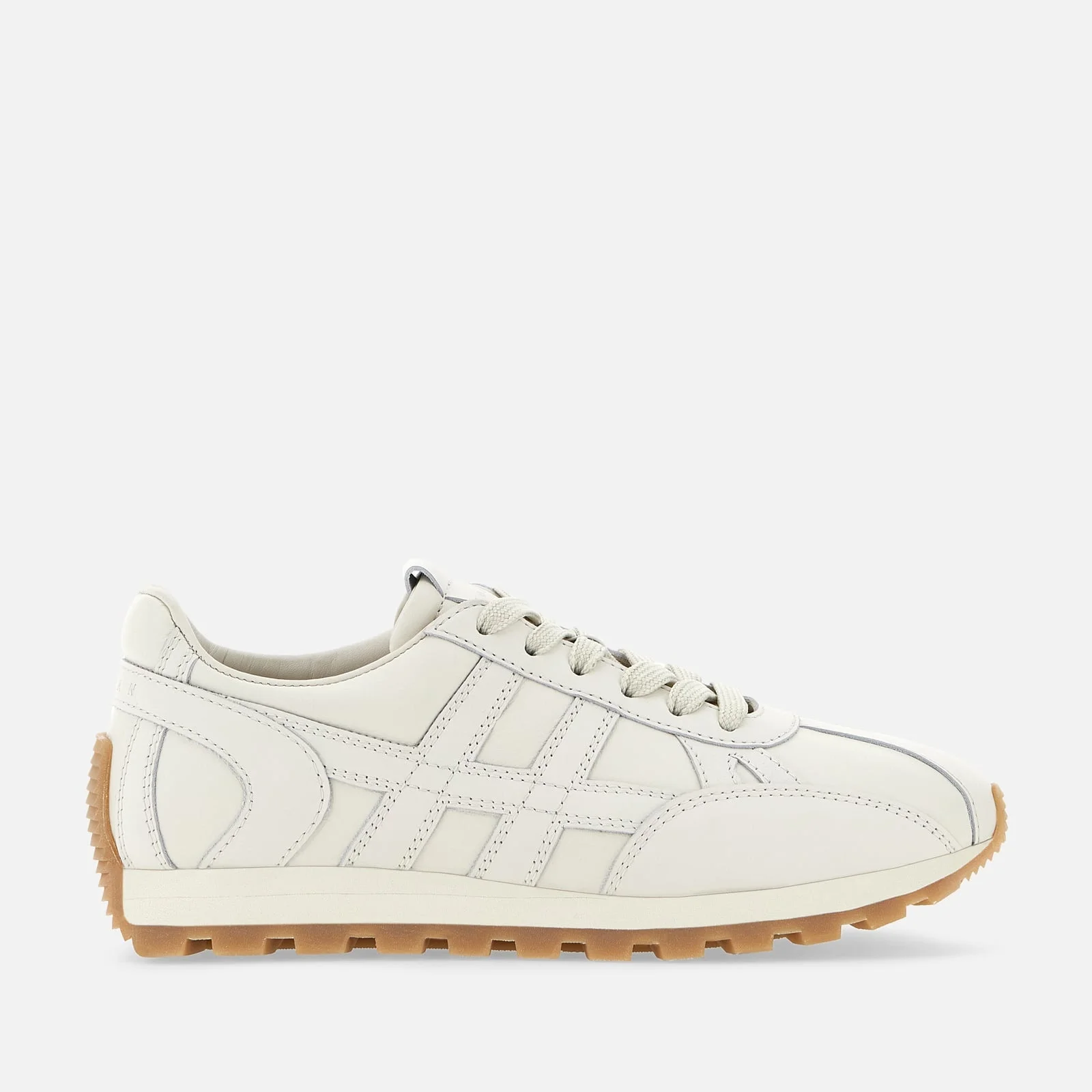 - Women's Hogan 86er Sneakers - Smooth and nappa leather upper - Smooth leather H applied on the side - Soft insole covered in leather 0.2 ins - EVA outsole - Total height 1.6 ins - Maintenance and care cards included - Fabric dustbag included - Additional laces included A nod to the popular sneakers that helped define the year of the brand’s birth, the Hogan 86er come here with the iconic H applique detailing. The extralight outsole features a cleated tread that also designs the heel reinforcement. Complemented by a soft insole, these sneakers in leather are perfect for an easy-going and relaxed outfit.