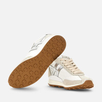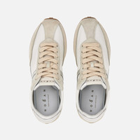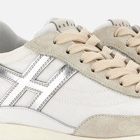 - Women's Hogan Athletic Sneakers - Made in Italy - Suede upper - Technical fabric inserts - Smooth leather side H and detailing - Memory foam insole 0.3 ins - Rubber outsole - Total height 2.2 ins - Maintenance and care cards included - Fabric dustbag included - Additional laces included A modern reworking of the sprinter style sneaker from the Hogan archive. Lightweight and dynamic, retro-athletic-inspired, these sneakers combine a super-soft upper and a vintage-style outsole, with tread characterized by H-shaped spikes. A concealed mini-wedge provides elevation without compromising the sporty aesthetic of the design. Crafted in suede and technical fabric, with the slanted H motif stretching toward the back of the upper, they are complemented by a memory foam insole.