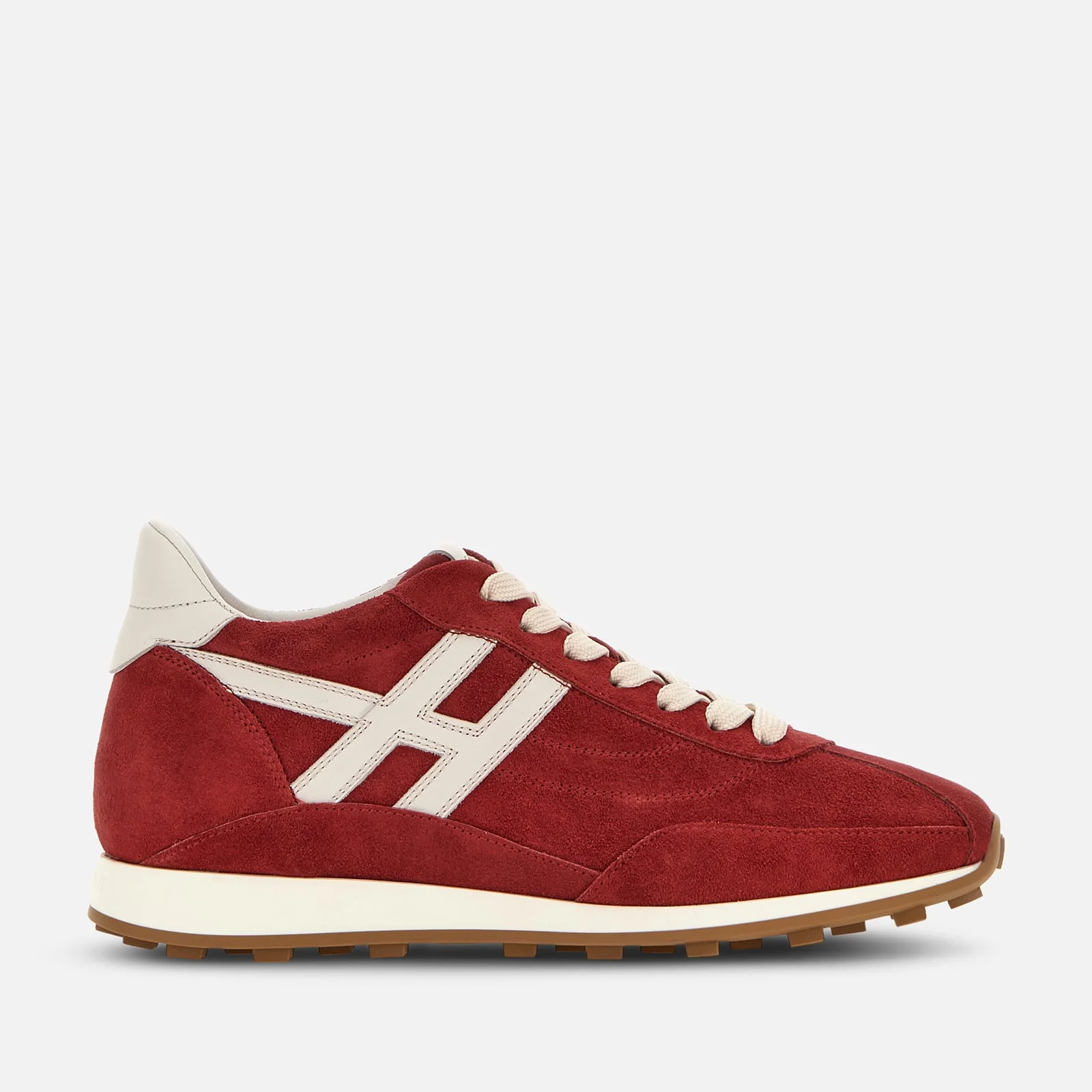 - Women's Hogan Athletic Sneakers - Made in Italy - Suede upper - Smooth leather side H and detailing - Memory foam insole 0.3 ins - Rubber outsole - Total height 2.2 ins - Maintenance and care cards included - Fabric dustbag included - Additional laces included A modern reworking of the sprinter style sneaker from the Hogan archive. Lightweight and dynamic, retro-athletic-inspired, these sneakers combine a super-soft upper and a vintage-style outsole, with tread characterized by H-shaped spikes. A concealed mini-wedge provides elevation without compromising the sporty aesthetic of the design. Crafted in suede and smooth leather, with the slanted H motif stretching toward the back of the upper, they are complemented by a memory foam insole.