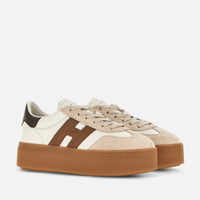 - Women's Hogan Cool Sneakers - Made in Italy - Nappa leather upper - Suede inserts - Smooth leather side H and detailing - Memory foam insole 0.3 ins - Rubber platform outsole - Total height 2.2 ins - Maintenance and care cards included - Fabric dustbag included - Additional laces included This Hogan Cool is characterized by its combination of distinctive upper and brand-new signature lightweight maxi sole. Showcasing both sophistication and elevation, this sneaker is crafted in nappa leather and suede. H branding on the side in smooth leather, and complemented by a comfortable memory foam insole.