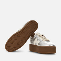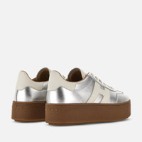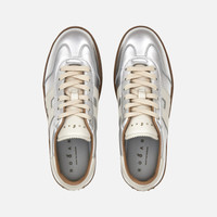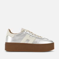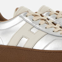 - Women's Hogan Cool Sneakers - Made in Italy - Metallic leather upper - Smooth leather side H and detailing - Memory foam insole 0.3 ins - Rubber platform outsole - Total height 2.2 ins - Maintenance and care cards included - Fabric dustbag included - Additional laces included This Hogan Cool is characterized by its combination of distinctive upper and brand-new signature lightweight maxi sole. Showcasing both sophistication and elevation, this sneaker is crafted in metallic leather. H branding on the side in smooth leather, and complemented by a comfortable memory foam insole.