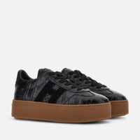- Women's Hogan Cool Sneakers - Made in Italy - Crocodile print leather upper - Suede side H and detailing - Memory foam insole 0.3 ins - Rubber platform outsole - Total height 2.2 ins - Maintenance and care cards included - Fabric dustbag included - Additional laces included This Hogan Cool is characterized by its combination of distinctive upper and brand-new signature lightweight maxi sole. Showcasing both sophistication and elevation, this sneaker is crafted in crocodile print leather. H branding on the side in suede, and complemented by a comfortable memory foam insole.