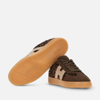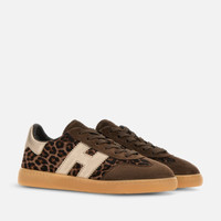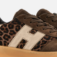 - Women's Hogan Cool Sneakers - Pony effect leather upper - Animal print - Suede inserts - Metallic leather side H and detailing - Memory foam insole 0.3 ins - Rubber (TPU) cupsole - Total height 1.3 ins - Maintenance and care cards include - Fabric dustbag included - Additional laces included Perfect mix of retro elements and contemporary lines, the Hogan Cool sneakers are characterized by a sober and refined look. Featuring a padded tongue, the upper here is crafted in pony effect leather with animal print, suede inserts and a serrated side H in metallic leather. The outsole recalls the slanted monogram on the tread, while the memory foam insole guarantees a cushioned fit.