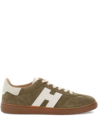 suede-panels leather H-logo sneakers Highlights - Olive green - Suede upper - Leather h logo detail - Lace-up fastening - Flat rubber sole - Round toe Imported Composition Lining: Fabric 100% Sole: Rubber 100% Outer: Calf Suede 85%, Lamb Skin 15%