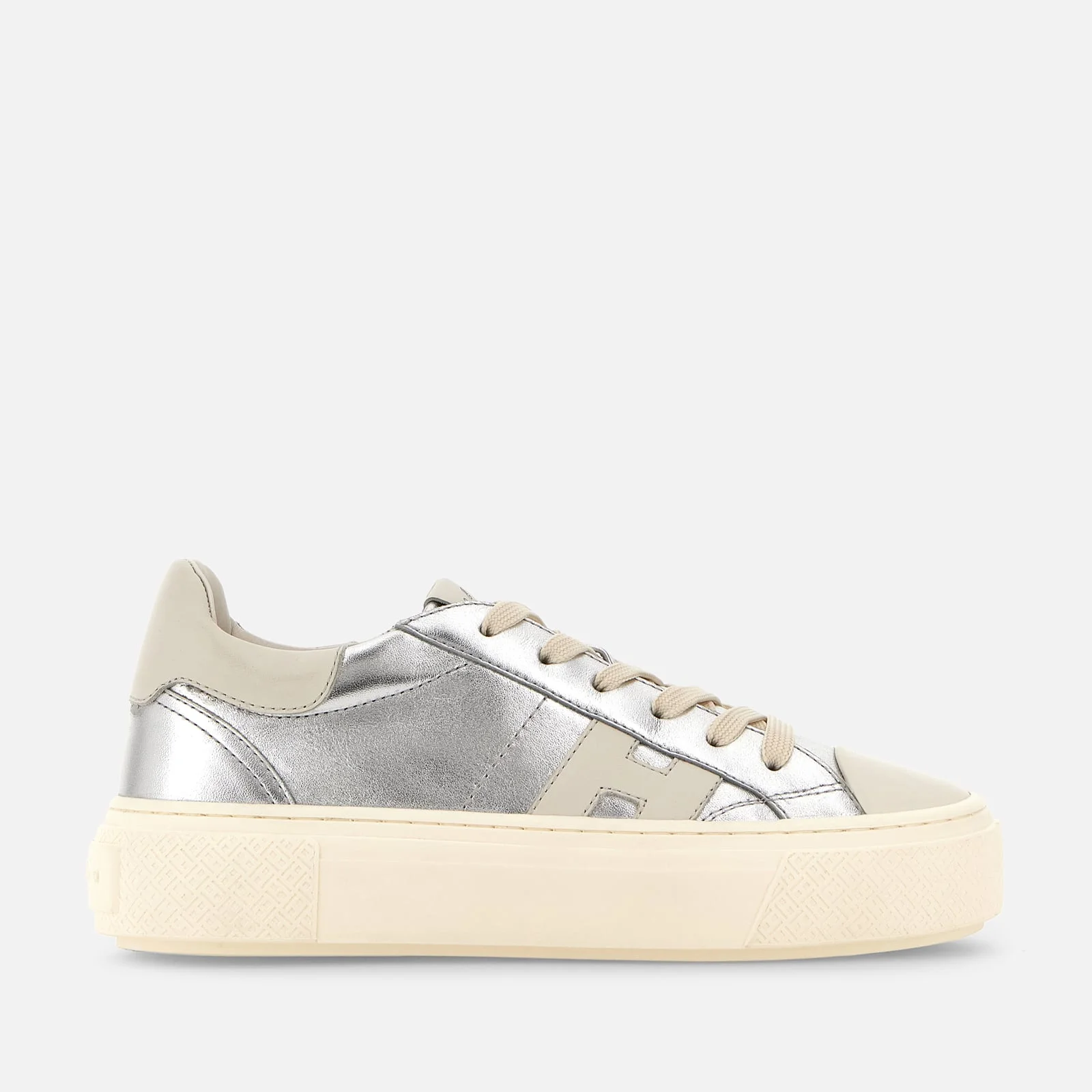 - Women's Hogan Crosswind Sneakers - Made in Italy - Metallic nappa and smooth leather upper - Rubberized leather detailing - Side H - Memory foam insole 0.3 ins - Rubber outsole - Total height 2.2 ins - Maintenance and care cards included - Fabric dustbag included - Additional laces included A skater-inspired women's shoe construction, with chunky outsole juxtaposed with a chic and relaxed upper. Characterized by an H-branding positioned at the front of the upper, these sneakers are crafted in soft metallic leather. Refined distinctive feature, the micro H monogram defines the texture of the rubber outsole and tread. The memory foam insole adds additional comfort and cushioning.