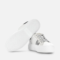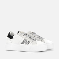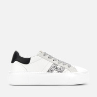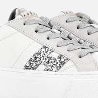 - Women's Hogan Crosswind Sneakers - Made in Italy - Nappa leather upper - Suede inserts - Rubberized leather detailing - Glitter side H - Memory foam insole 0.3 ins - Rubber outsole - Total height 2.2 ins - Maintenance and care cards included - Fabric dustbag included - Additional laces included A skater-inspired women's shoe construction, with chunky outsole juxtaposed with a chic and relaxed upper. Characterized by an H-branding positioned at the front of the upper, these sneakers are crafted in nappa leather with suede detailing. Refined distinctive feature, the micro H monogram defines the texture of the rubber outsole and tread. The memory foam insole adds additional comfort and cushioning.