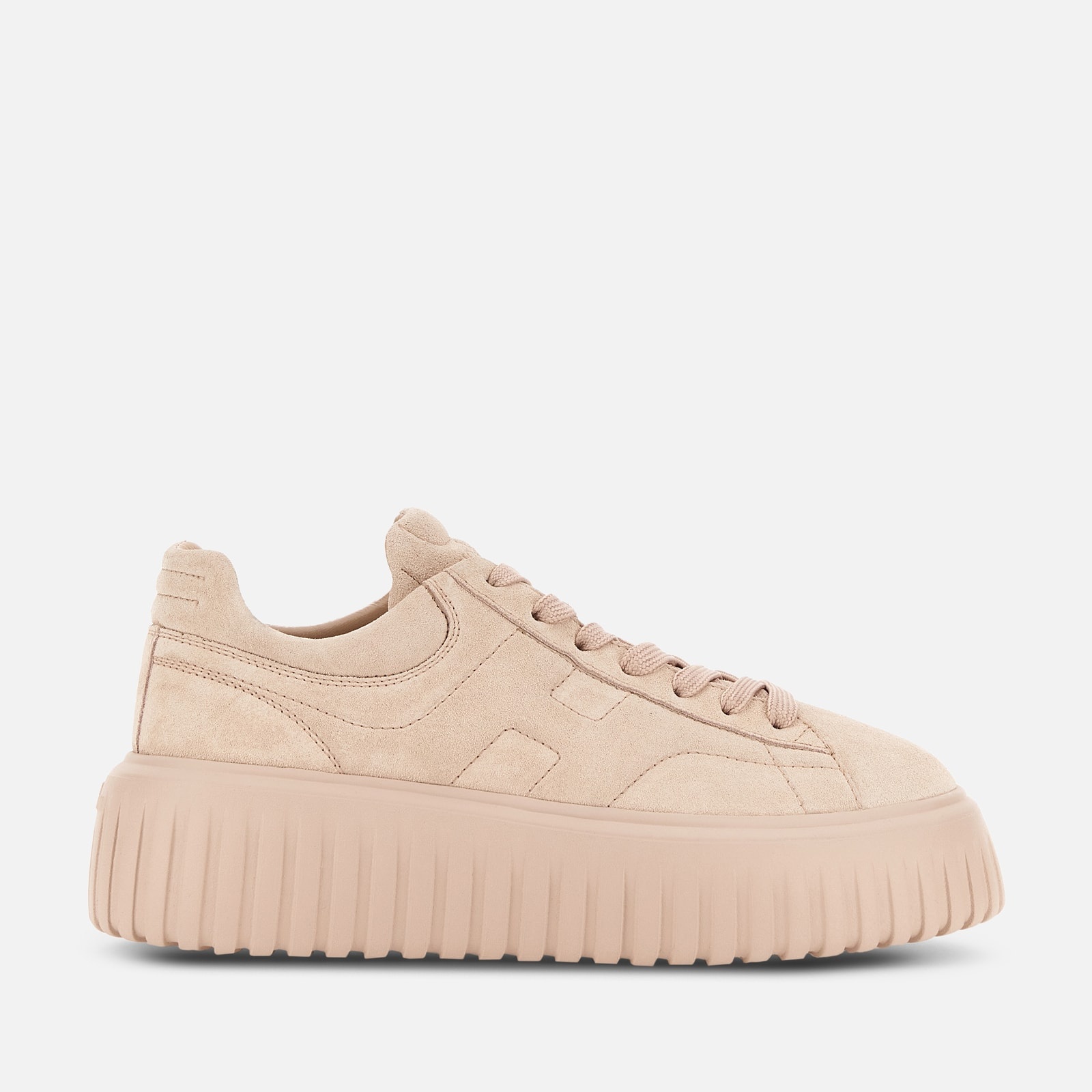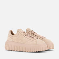 - Women's Hogan H-Stripes Sneakers - Made in Italy - Suede upper - Side H - Memory foam insole 0.3 ins - EVA outsole - Total height 2.3 ins - Maintenance and care cards included - Fabric dustbag included - Additional laces included A new style with sporty and versatile lines, the H-Stripes sneakers feature an extra-light outsole with vertical stripes. The upper, with a compact and balanced design, is characterized by the H that extends across the side. The upper trim, with stitching on the back patch, comes with a soft padding. This version is crafted in suede, with a memory foam insole that guarantees comfortable cushioning.