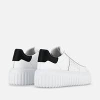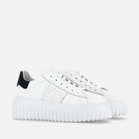 - Women's Hogan H-Stripes Sneakers - Made in Italy - Smooth leather upper - HGN86 logo printed on the side - Memory foam insole 0.3 ins - EVA outsole - Total height 2.3 ins - Maintenance and care cards included - Fabric dustbag included - Additional laces included A new style with sporty and versatile lines, the H-Stripes sneakers feature an extralight outsole with vertical stripes. The upper, with a compact and balanced design, is characterized by the HGN86 logo printed on the side band. The upper trim comes with a soft padding. This version is crafted in smooth leather, with a memory foam insole that guarantees comfortable cushioning.