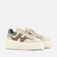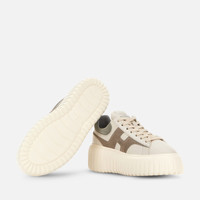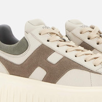 - Women's Hogan H-Stripes Sneakers - Made in Italy - Leather upper - Suede side H - Soft nappa leather detailing - Memory foam insole 0.3 ins - EVA outsole - Total height 2.3 ins - Maintenance and care cards included - Fabric dustbag included - Additional laces included A new style with sporty and versatile lines, the H-Stripes sneakers feature an extralight outsole with vertical stripes. The upper, with a compact and balanced design, is characterized by the H that extends across the side. The upper trim, featuring stitching on the back patch, comes with a soft padding. This version is crafted in leather, with a memory foam insole that guarantees comfortable cushioning.