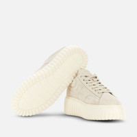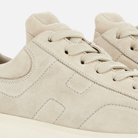 - Women's Hogan H-Stripes Sneakers - Made in Italy - Suede upper - Side H - Memory foam insole 0.3 ins - EVA outsole - Total height 2.3 ins - Maintenance and care cards included - Fabric dustbag included - Additional laces included A new style with sporty and versatile lines, the H-Stripes sneakers feature an extra-light outsole with vertical stripes. The upper, with a compact and balanced design, is characterized by the H that extends across the side. The upper trim, with stitching on the back patch, comes with a soft padding. This version is crafted in suede, with a memory foam insole that guarantees comfortable cushioning.