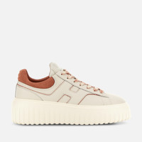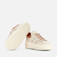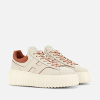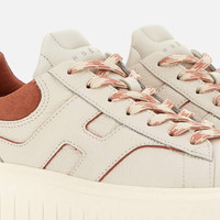 - Women's Hogan H-Stripes Sneakers - Made in Italy - Leather upper - Side H - Suede and nappa leather detailing - Memory foam insole 0.3 ins - EVA outsole - Total height 2.3 ins - Maintenance and care cards included - Fabric dustbag included - Additional laces included A new style with sporty and versatile lines, the H-Stripes sneakers feature an extralight outsole with vertical stripes. The upper, with a compact and balanced design, is characterized by the H that extends across the side. The upper trim, featuring stitching on the back patch, comes with a soft padding. This version is crafted in leather, with a memory foam insole that guarantees comfortable cushioning.