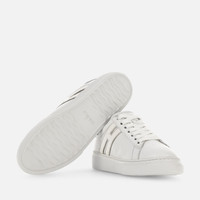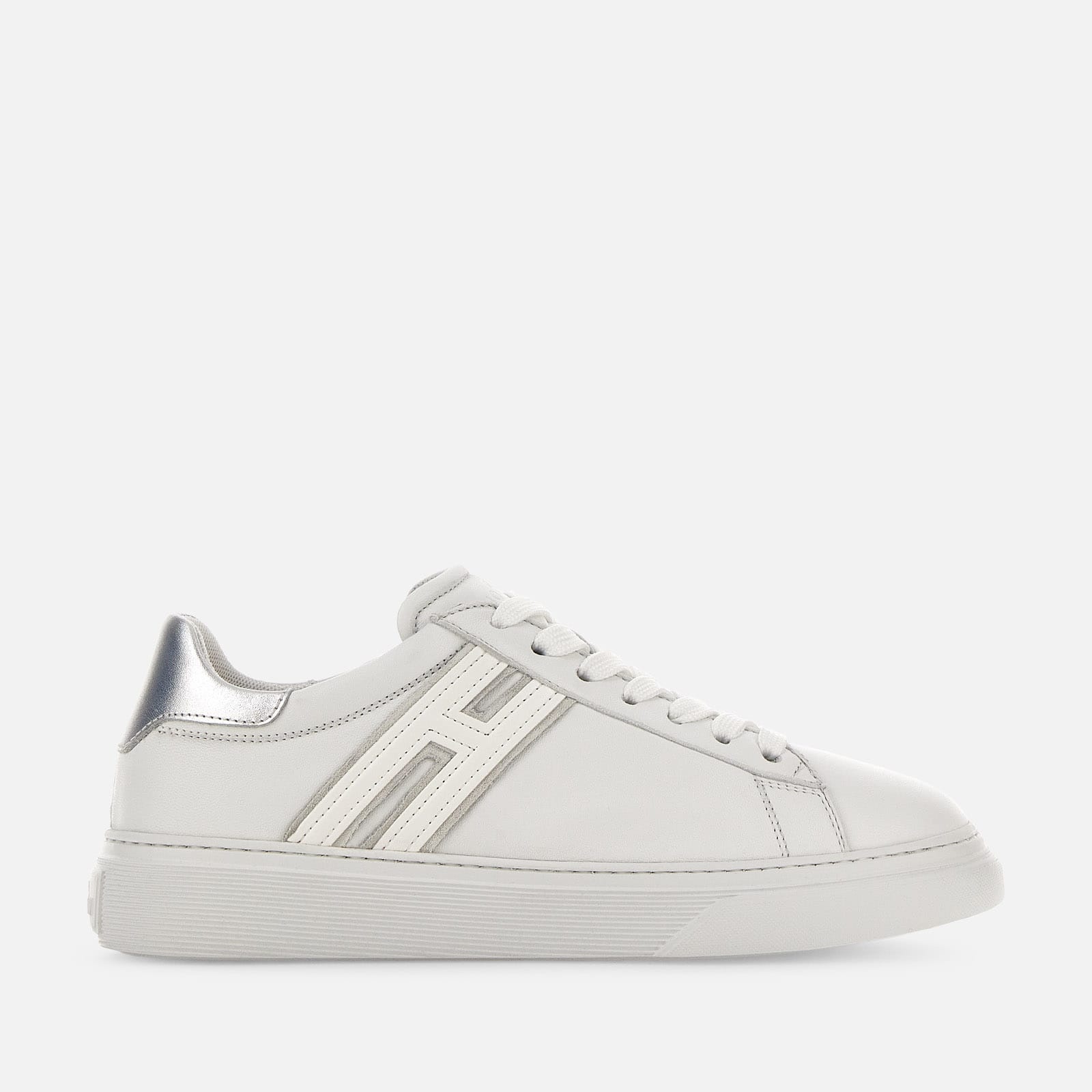 - Women's Hogan H365 Sneakers - Made in Albania - Leather upper - Metallic leather inserts - Suede detailing - Removable insole 0.5 ins rise - Rubber outsole - Total height 1.4 ins - Maintenance and care cards included - Fabric dustbag included The Hogan H365 interprets traditional tennis shoe lines with a contemporary twist. Featuring an iconic lightweight cupsole, it comes with a sober and essential upper. These timeless women's low-top sneakers are crafted in smooth leather, with elongated side H and metallic leather detailing. Perfect for adding unique style to any metropolitan outfit. MOD. HXW3650J310RNQ0351