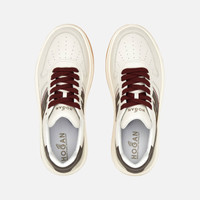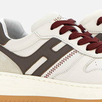 - Women's Hogan H630 Sneakers - Made in Italy - Nappa leather upper - Sooth leather inserts - Suede detailing - Smooth leather side H - Memory foam insole 0.4 ins - Rubber outsole - Total height 1.6 ins - Maintenance and care cards included - Fabric dustbag included - Additional laces included Sneakers with retro vibes, the Hogan H630 combines lines belonging to the basketball world and classic brand style. The nappa leather upper with smooth leather inserts features an extended H that envelopes the heel. The outsole is crafted in extra-light EVA, with the new embossed HGN86 logo on the side and shaded stripes that reinterpret the historic Rebel grooves. True must-have for the contemporary wardrobe, this dynamic style is complemented by a memory foam insole that ensures softness and cushioning.