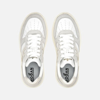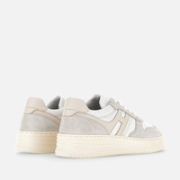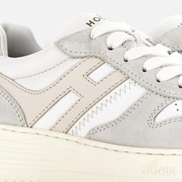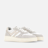 - Women's Hogan H630 Sneakers - Made in Italy - Smooth leather upper - Suede inserts - Smooth leather side H - Memory foam insole - Rubber outsole - Maintenance and care cards included - Fabric dustbag included New sneakers with retro vibes, the Hogan H630 combines lines belonging to the basketball world and classic brand style. The smooth leather upper with suede inserts features an extended H that envelopes the heel. The outsole is crafted in extra-light EVA, with the new embossed HGN86 logo on the side and shaded stripes that reinterpret the historic Rebel grooves. True must-have for the contemporary wardrobe, this dynamic style is completed by a memory foam insole that ensures softness and cushioning. MOD. HXW6300EU50ODZ0ZS5