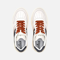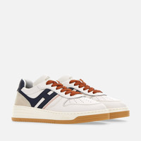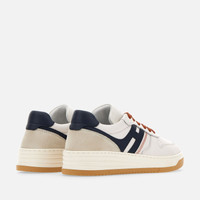 - Women's Hogan H630 Sneakers - Made in Italy - Smooth leather upper - Suede inserts - Smooth leather side H - Memory foam insole - Rubber outsole - Maintenance and care cards included - Fabric dustbag included New sneakers with retro vibes, the Hogan H630 combines lines belonging to the basketball world and classic brand style. The smooth leather upper with suede inserts features an extended H that envelopes the heel. The outsole is crafted in extra-light EVA, with the new embossed HGN86 logo on the side and shaded stripes that reinterpret the historic Rebel grooves. True must-have for the contemporary wardrobe, this dynamic style is completed by a memory foam insole that ensures softness and cushioning. MOD. HXW6300EU50ODZ743L