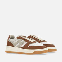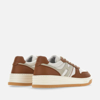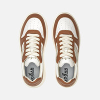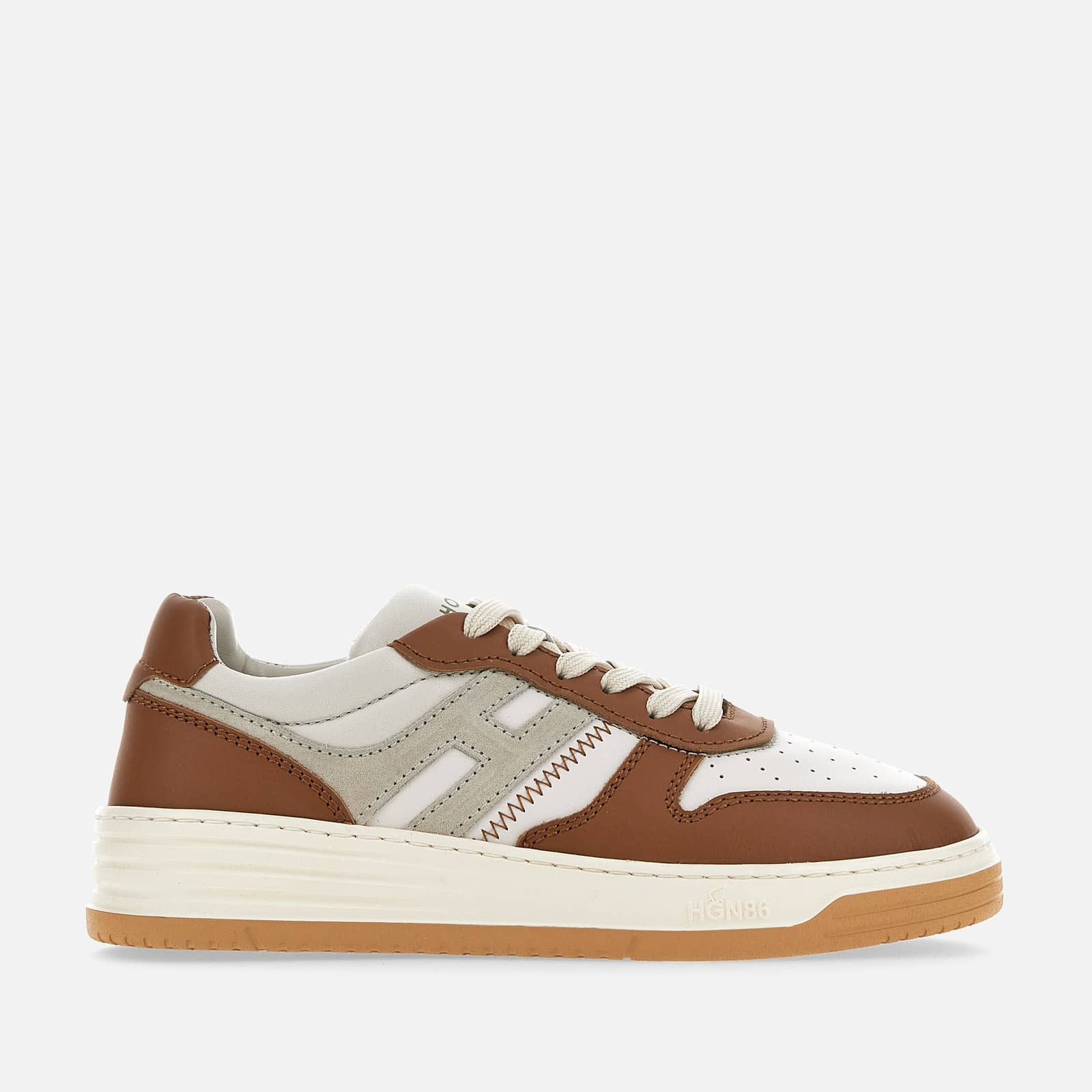 - Women's Hogan H630 Sneakers - Made in Italy - Smooth leather upper - Suede side H - Memory foam insole - Rubber outsole - Maintenance and care cards included - Fabric dustbag included New sneakers with retro vibes, the Hogan H630 combines lines belonging to the basketball world and classic brand style. The smooth leather upper features an extended H that envelopes the heel. The outsole is crafted in extra-light EVA, with the new embossed HGN86 logo on the side and shaded stripes that reinterpret the historic Rebel grooves. True must-have for the contemporary wardrobe, this dynamic style is completed by a memory foam insole that ensures softness and cushioning. MOD. HXW6300EU50OIS641J