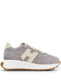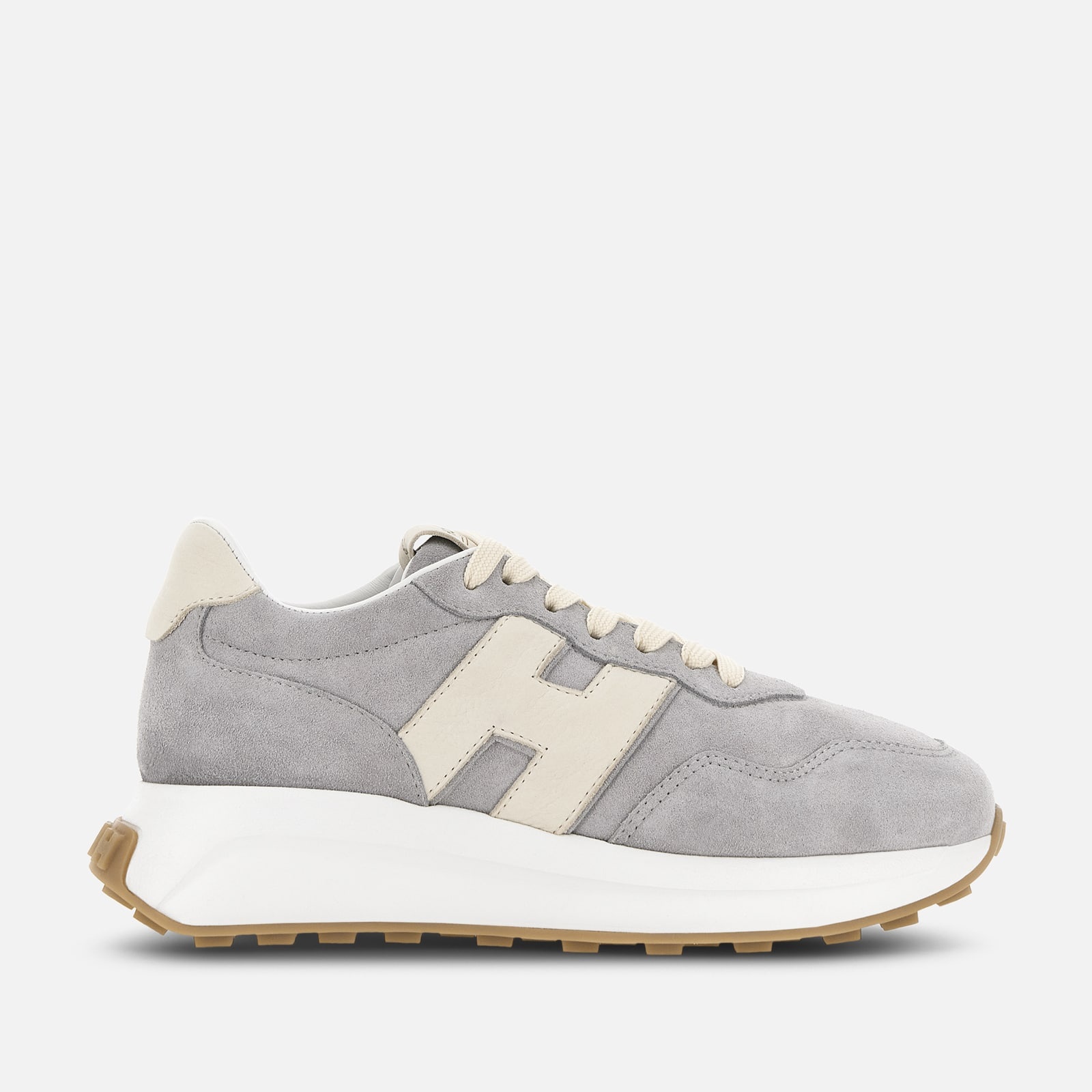 - Women's Hogan H641 Sneakers - Made in Italy - Suede upper - Nubuck side H - Memory foam insole 0.3 ins - Rubber outsole - Total height 2 ins - Maintenance and care cards included - Fabric dustbag included - Additional laces included Bold look and retro references coexist in the Hogan H641 sneakers. Designed for optimal grip, the lightweight outsole comes with a tread with H-shaped spikes. These sneakers come with a suede upper, with a nubuck side H. The memory foam insole guarantees a cushioned fit.