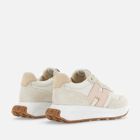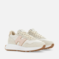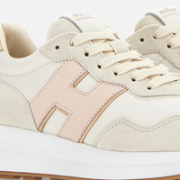 - Women's Hogan H641 Sneakers - Made in Italy - Suede upper - Nappa leather inserts - Nubuck side H - Smooth leather detailing - Memory foam insole 0.3 ins - Rubber outsole - Total height 2 ins - Maintenance and care cards included - Fabric dustbag included - Additional laces included Bold look and retro references coexist in the Hogan H641 sneakers. Designed for optimal grip, the lightweight outsole comes with a tread with H-shaped spikes. These sneakers feature a suede upper, with soft nappa leather inserts and nubuck side H. The memory foam insole guarantees a cushioned fit.