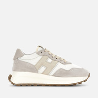 - Women's Hogan H641 Sneakers - Made in Italy - Suede upper - Fabric inserts - Smooth leather detailing - Memory foam insole 0.3 ins - Rubber outsole - Total height 2 ins - Maintenance and care cards included - Fabric dustbag included - Additional laces included Bold look and retro references coexist in the Hogan H641 sneakers. Designed for optimal grip, the lightweight outsole comes with a tread with H-shaped spikes. These sneakers feature a suede upper, with fabric inserts and side H. The memory foam insole guarantees a cushioned fit.