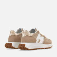 - Women's Hogan H641 Sneakers - Made in Italy - Suede upper - Technical fabric inserts - Side H - Hogan logo stamped on the back - Memory foam insole - Rubber outsole - Maintenance and care cards included - Fabric dustbag included Bold look, cool character and retro suggestions coexist in the women's Hogan H641 sneakers. Designed for optimal grip, the lightweight outsole reinterprets the historic 261 model, adding a lateral groove and a tread with H-shaped spikes. The upper is crafted in suede and technical fabric, with side H. The memory foam insole guarantees a cushioned fit. MOD. HXW6410EV80P3Q0RUJ