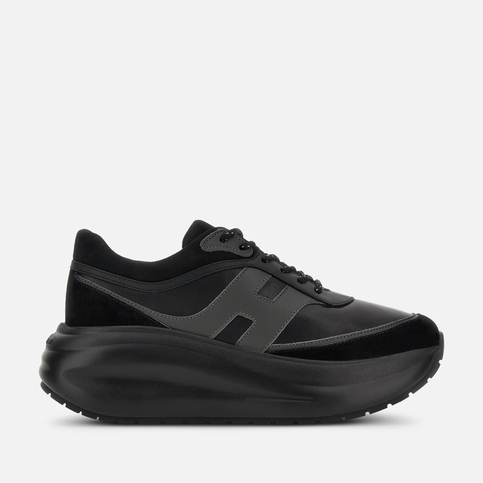 - Women's Hogan H696 Sneakers - Made in Italy - Nappa leather upper - Suede inserts - Smooth leather side H and detailing - Hogan logo stamped on the tongue - Memory foam insole 0.2 ins - Extralight rubber outsole - Total height 2.6 ins - Maintenance and care cards included - Fabric dustbag included - Additional laces included A new sculptural construction and a voluptuous chunky sole that provides comfortable elevation. The Hogan H696 sneaker features a dynamic and sophisticated design. Crafted in nappa leather and suede with luxury manufacturing, it comes with a softly rounded upper, maxi H on the side and a memory foam insole.