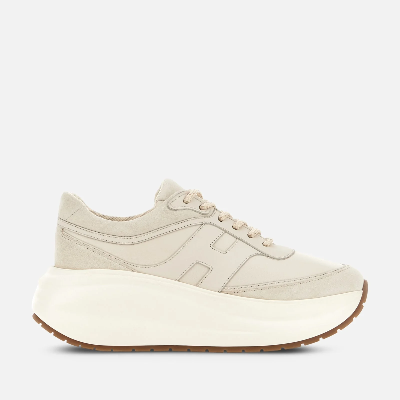 - Women's Hogan H696 Sneakers - Made in Italy - Nappa leather upper - Suede inserts - Smooth leather side H and detailing - Hogan logo stamped on the tongue - Memory foam insole 0.2 ins - Extralight rubber outsole - Total height 2.6 ins - Maintenance and care cards included - Fabric dustbag included - Additional laces included A new sculptural construction and a voluptuous chunky sole that provides comfortable elevation. The Hogan H696 sneaker features a dynamic and sophisticated design. Crafted in nappa leather and suede with luxury manufacturing, it comes with a softly rounded upper, maxi H on the side and a memory foam insole.