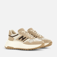- Women's Hogan Hi-Fi Sneakers - Made in Italy - Suede upper - Carved side H - Lycra net fabric inserts - Smooth leather detailing - Memory foam insole 0.3 ins - Rubber outsole - Total height 2.6 ins - Maintenance and care cards included - Fabric dustbag included - Additional laces included The Hogan Hi-Fi sneakers take a feminine twist on the studded Hyperlight outsole, with a raised platform for height and elegance. Recalling the 80s sporting iconography with their technical finishing and urban vocation, they feature a combination of soft and snappy lines. The upper comes here crafted in suede, with the H on the side band. An energetic athleisure style, with a memory foam insole to guarantee extra comfort and a cushioned fit.