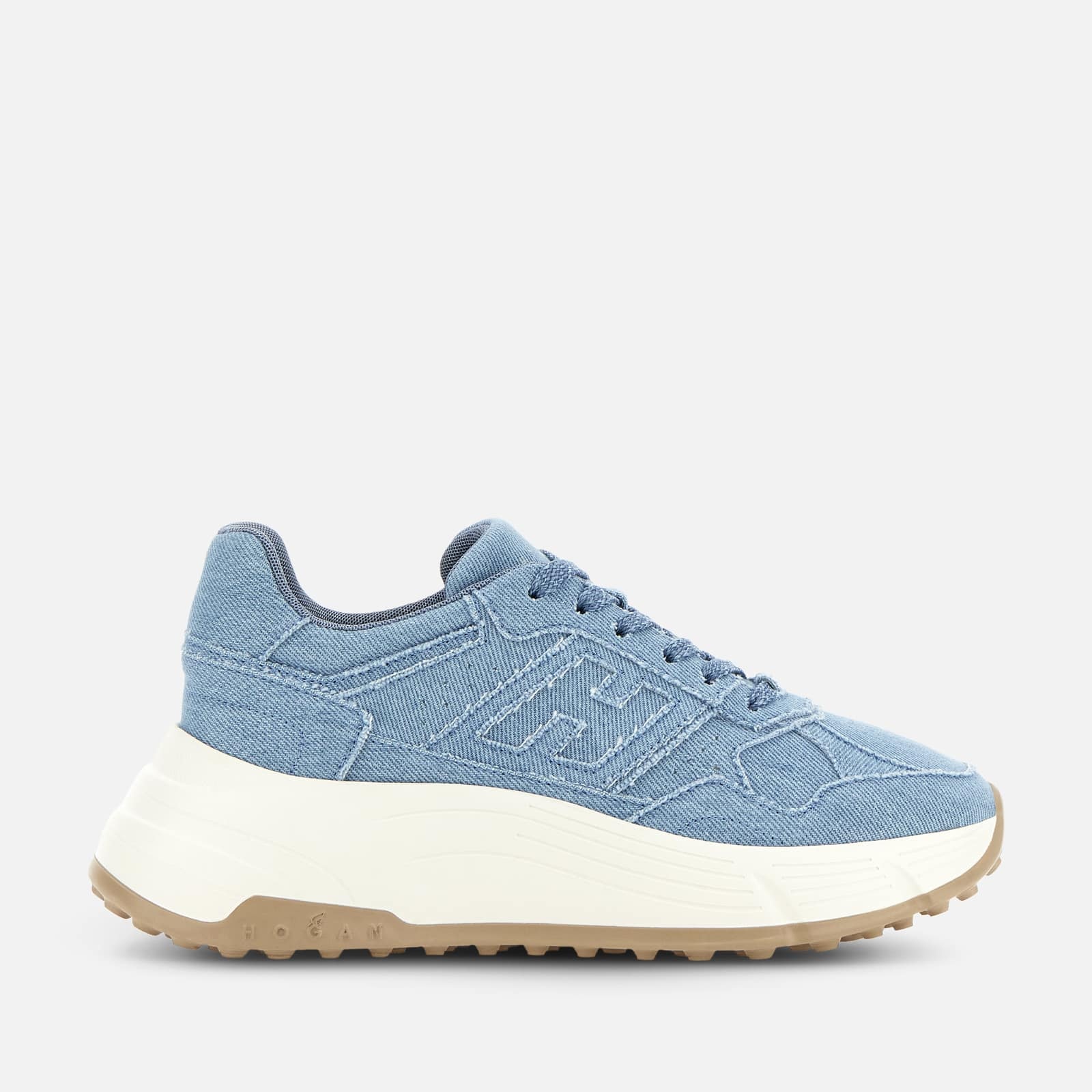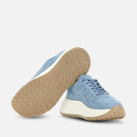 - Women's Hogan Hi-Fi Sneakers - Made in Italy - Cotton upper - Fringed side H and piping - Memory foam insole 0.3 ins - Rubber outsole - Total height 2.6 ins - Maintenance and care cards included - Fabric dustbag included - Additional laces included The Hogan Hi-Fi sneakers take a feminine twist on the studded Hyperlight outsole, with a raised platform for height and elegance. Recalling the 80s sporting iconography with their technical finishing and urban vocation, they feature a combination of soft and snappy lines. The upper comes here crafted in denim, with fringed piping and a maxi H on the side band. An energetic athleisure style, with a memory foam insole to guarantee extra comfort and a cushioned fit.