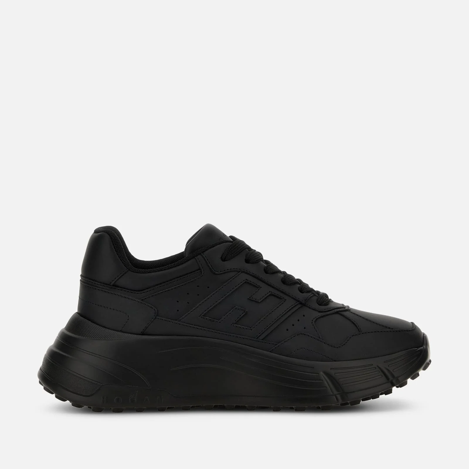 - Women's Hogan Hi-Fi Sneakers - Made in Italy - Smooth leather upper - Carved side H - Memory foam insole 0.3 ins - Rubber outsole - Total height 2.6 ins - Maintenance and care cards included - Fabric dustbag included - Additional laces included The Hogan Hi-Fi sneakers take a feminine twist on the studded Hyperlight outsole, with a raised platform for height and elegance. Recalling the 80s sporting iconography with their technical finishing and urban vocation, they feature a combination of soft and snappy lines. The upper comes here crafted in smooth leather, with the H on the side band. An energetic athleisure style, with a memory foam insole to guarantee extra comfort and a cushioned fit.
